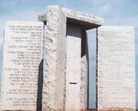 The Georgia Guidestones, supposedly financed by a mysterious R.C. Christian, are known as "the Stonehenge of Georgia." They are the new ten commandments for humanity, carved in stone (granite) for those with eyes to see in Elbert County, Georgia. They are set atop a hill, four standing tablets, capped by a fifth. Maintain humanity under 500,000,000 in perpetual balance with nature. Guide reproduction wisely - improving fitness and diversity. Unite humanity with a living new language. Rule passion - faith - tradition - and all things with tempered reason. Protect people and nations with fair laws and just courts. Let all nations rule internally resolving external disputes in a world court. Avoid petty laws and useless officials. Balance personal rights with social duties. Prize truth - beauty - love - seeking harmony with the infinite. Be not a cancer on the earth - Leave room for nature - Leave room for nature. |
